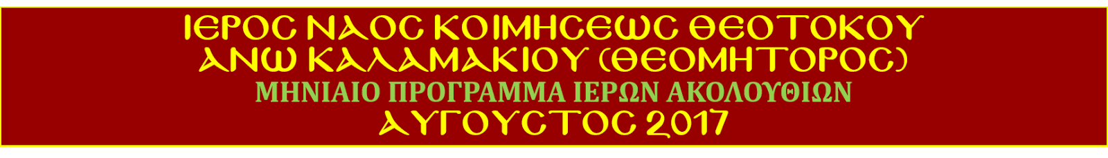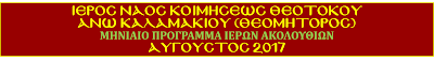 ΠΡΟΓΡΑΜΜΑ ΑΚΟΛΟΥΘΙΩΝ ΑΥΓΟΥΣΤΟΥ 2017