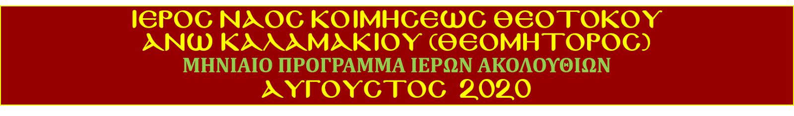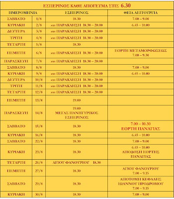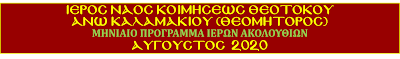 ΠΡΟΓΡΑΜΜΑ ΑΚΟΛΟΥΘΙΩΝ ΑΥΓΟΥΣΤΟΥ 2020