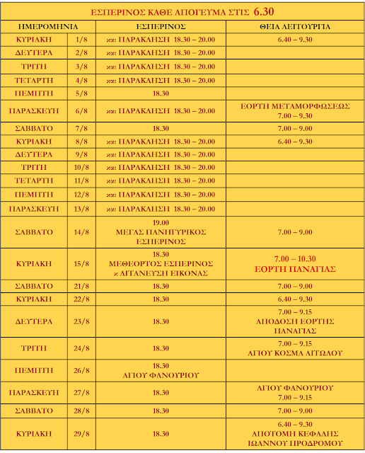 ΠΡΟΓΡΑΜΜΑ ΑΚΟΛΟΥΘΙΩΝ ΑΥΓΟΥΣΤΟΥ 2021