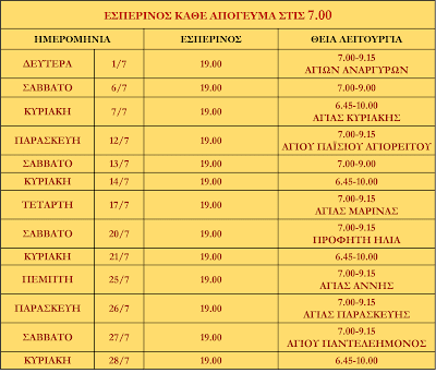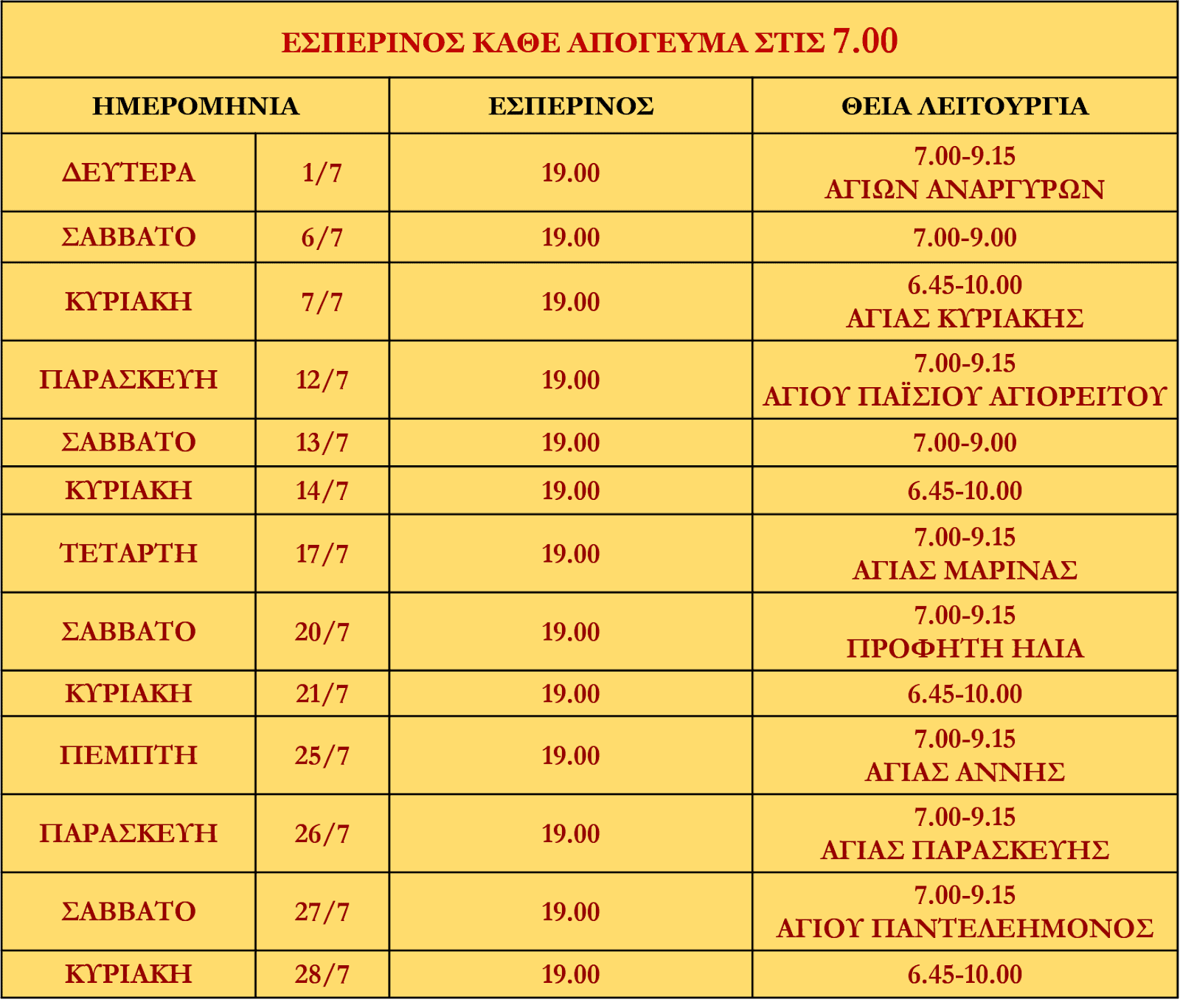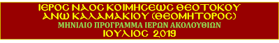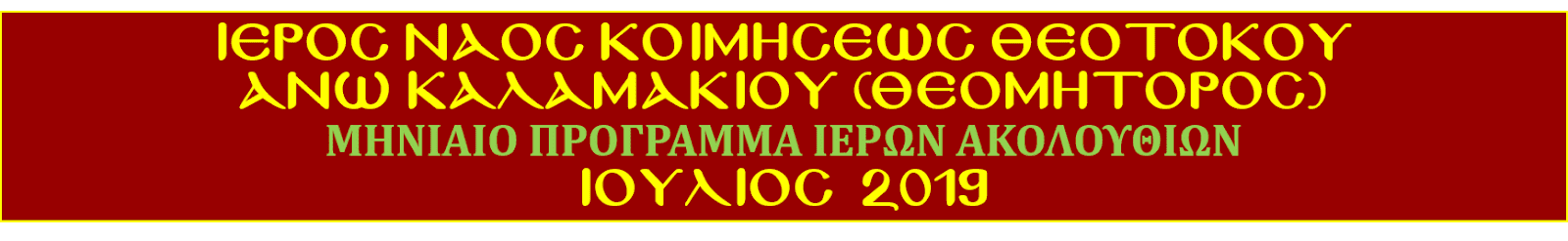ΠΡΟΓΡΑΜΜΑ ΑΚΟΛΟΥΘΙΩΝ ΙΟΥΛΙΟΥ 2019