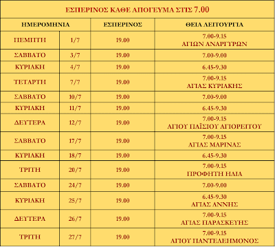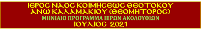 ΠΡΟΓΡΑΜΜΑ ΑΚΟΛΟΥΘΙΩΝ ΙΟΥΛΙΟΥ 2021