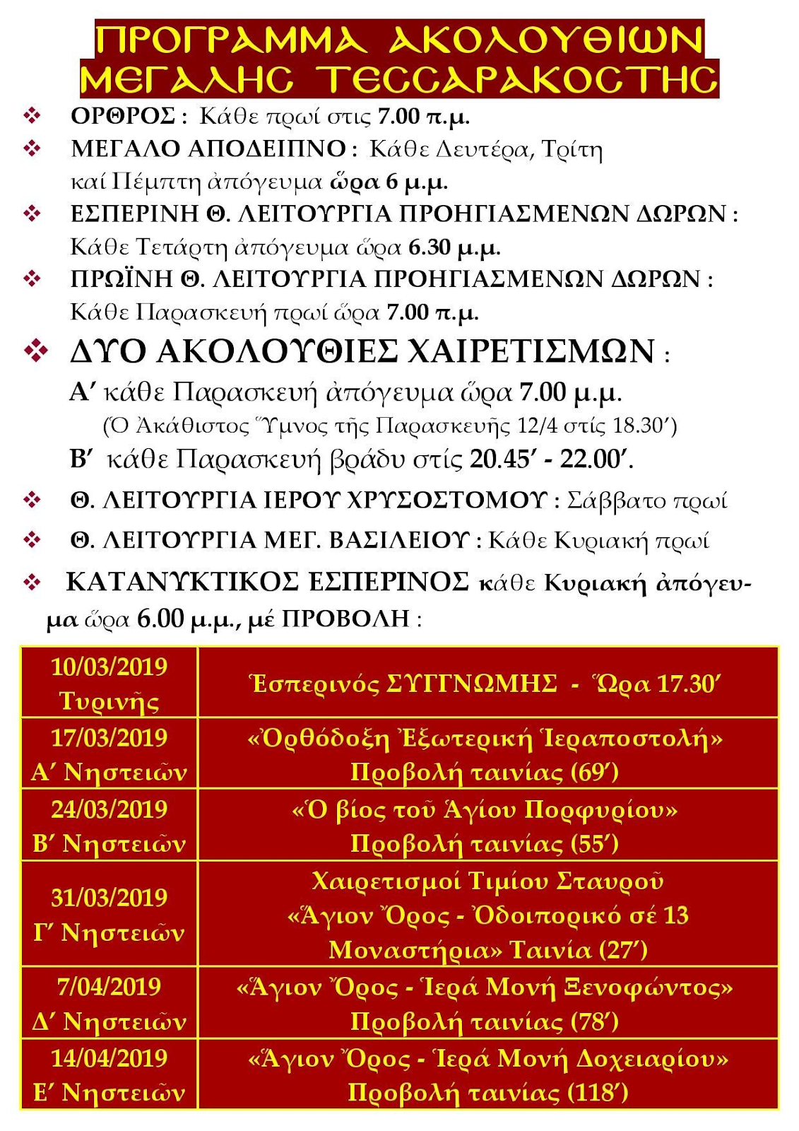 ΠΡΟΓΡΑΜΜΑ ΑΚΟΛΟΥΘΙΩΝ ΜΕΓΑΛΗΣ ΣΑΡΑΚΟΣΤΗΣ