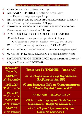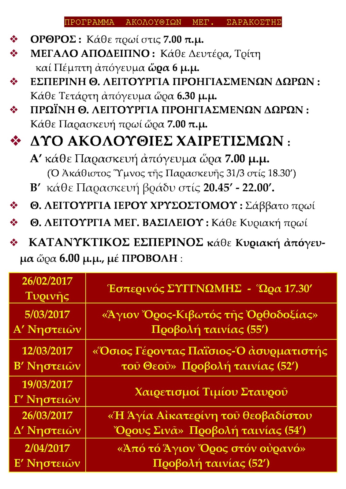 ΠΡΟΓΡΑΜΜΑ ΑΚΟΛΟΥΘΙΩΝ ΜΕΓΑΛΗΣ ΣΑΡΑΚΟΣΤΗΣ 2017