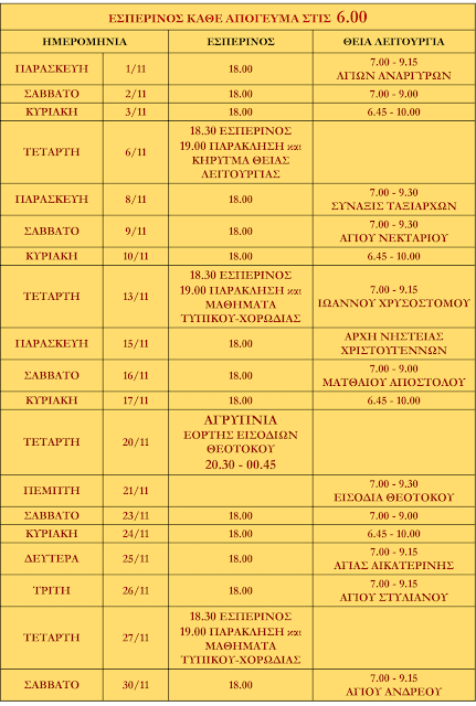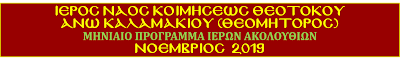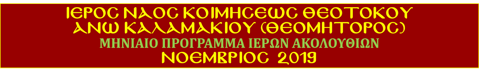 ΠΡΟΓΡΑΜΜΑ ΑΚΟΛΟΥΘΙΩΝ ΝΟΕΜΒΡΙΟΥ 2019