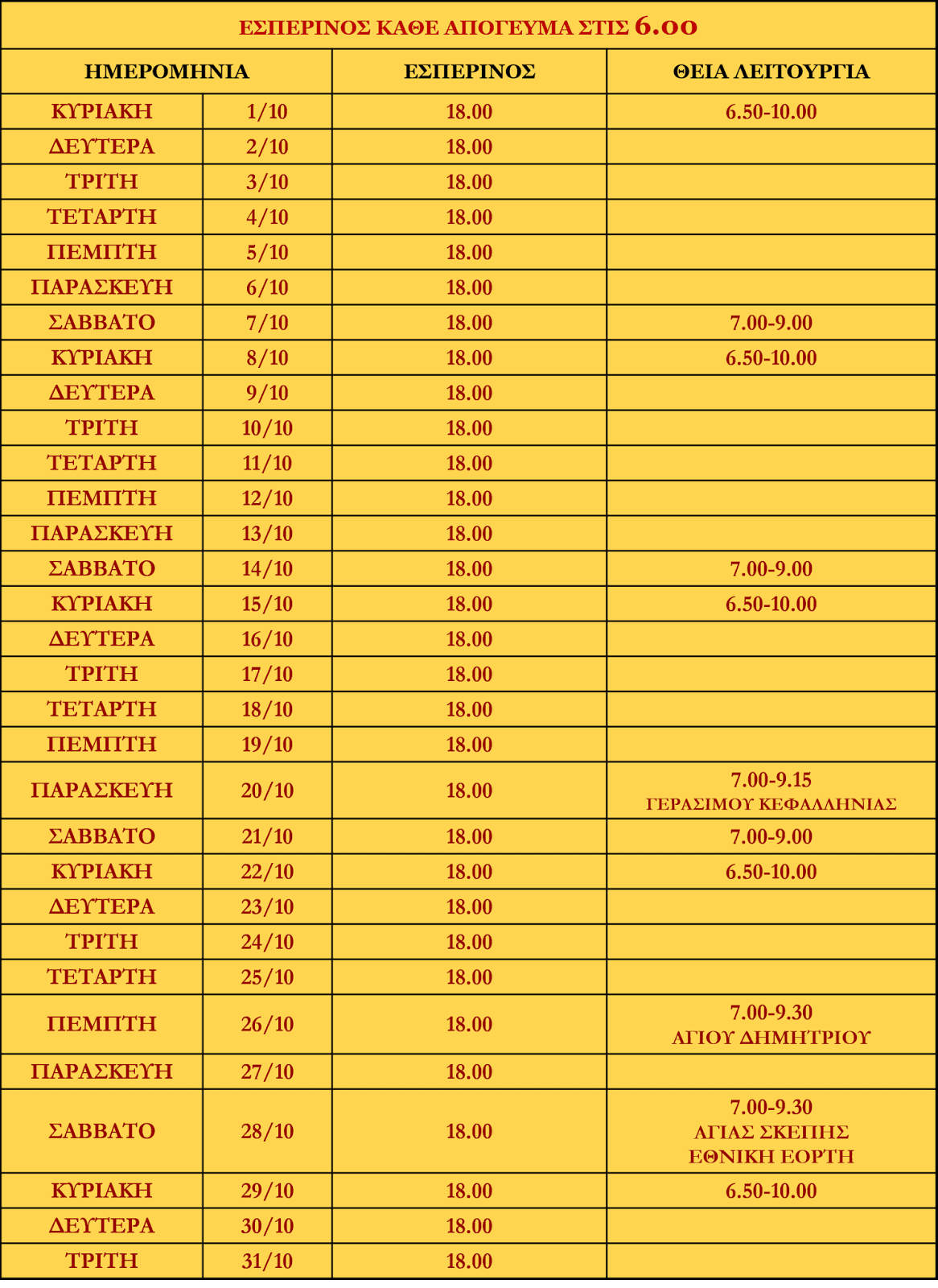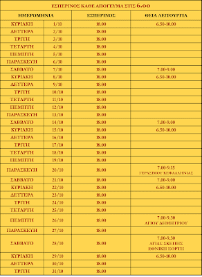 ΠΡΟΓΡΑΜΜΑ ΑΚΟΛΟΥΘΙΩΝ ΟΚΤΩΒΡΙΟΥ 2017