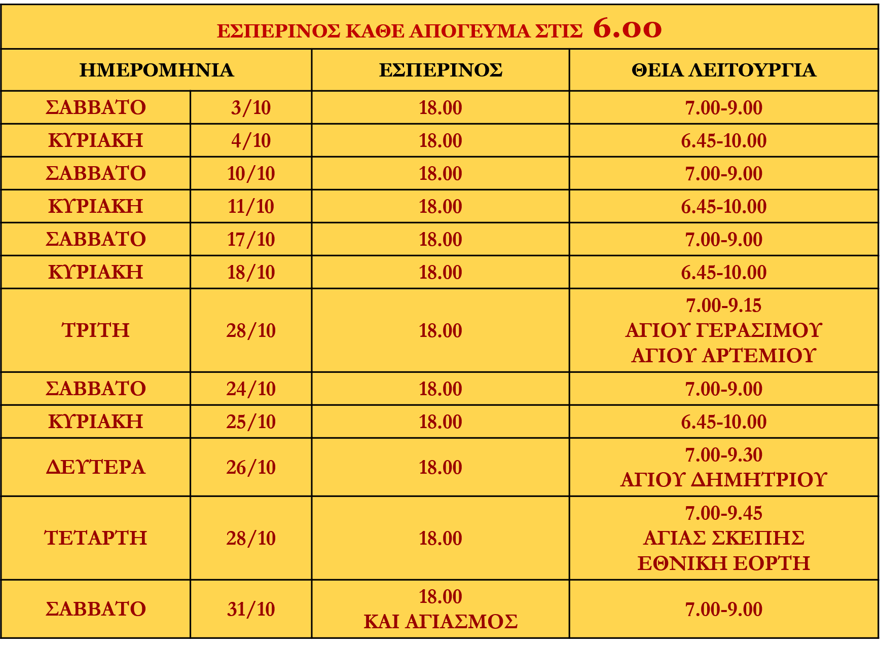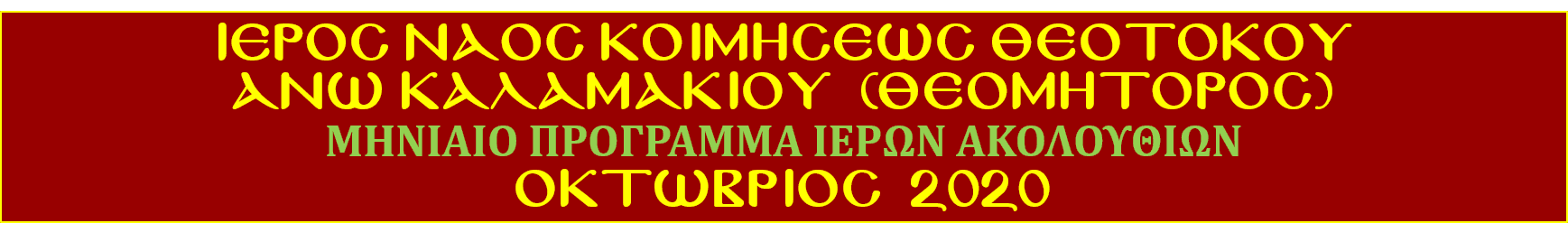 ΠΡΟΓΡΑΜΜΑ ΑΚΟΛΟΥΘΙΩΝ ΟΚΤΩΒΡΙΟΥ 2020