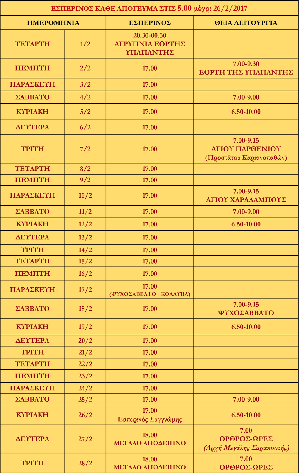 ΠΡΟΓΡΑΜΜΑ ΑΚΟΛΟΥΘΙΩΝ ΦΕΒΡΟΥΑΡΙΟΥ 2017