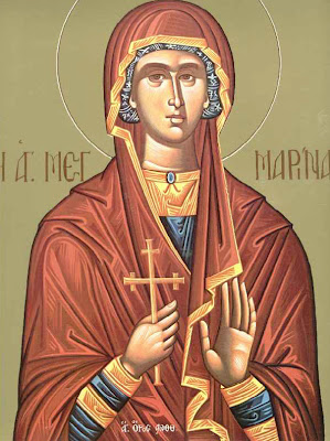 Μνηστευθεῖσα τῷ Λόγῳ Μαρίνα ἔνδοξε, τῶν ἐπιγείων τὴν σχέσιν πᾶσαν κατέλιπες, καὶ ἐνήθλησας λαμπρῶς ὡς καλλιπάρθενος· τὸν γὰρ ἀόρατον ἐχθρὸν κατεπάτησας στερρῶς ὀφθέντα σοὶ Ἀθληφόρε. Καὶ νῦν πηγάζεις τῷ κόσμῳ τῶν ἰαμάτων τὰ δωρήματα.