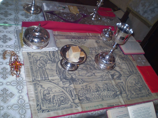 Είναι χαρακτηριστική η ευχή: «καταξίωσον ημάς μεταλαβείν των επουρανίων σου και φρικτών Μυστηρίων ταύτης της ιεράς και πνευματικής Τραπέζης, μετά καθαρού συνειδότος, εις άφεσιν αμαρτιών, εις συγχώρησιν πλημμελημάτων, εις Πνεύματος Αγίου κοινωνίαν, εις Βασιλείας ουρανών κληρονομίαν, εις παρρησίαν την προς σε, μη εις κρίμα, η εις κατάκριμα».