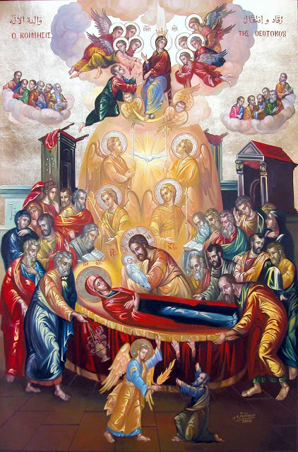 Όσοι πιστοί ορθόδοξοι «προσέλθωμεν τω τάφω της Θεομήτορος»! Να γονατίσουμε ικετευτικά, να προσκυνήσουμε λατρευτικά, να υμνήσουμε δοξολογικά και ταπεινά να παρακαλέσουμε την Κυρία Θεοτόκο να πρεσβεύει για κάθε ψυχή πονεμένη, πικραμένη και παραπονεμένη, και για τούτη την πολυβασανισμένη πατρίδα μας Ελλάδα.