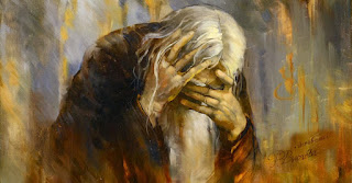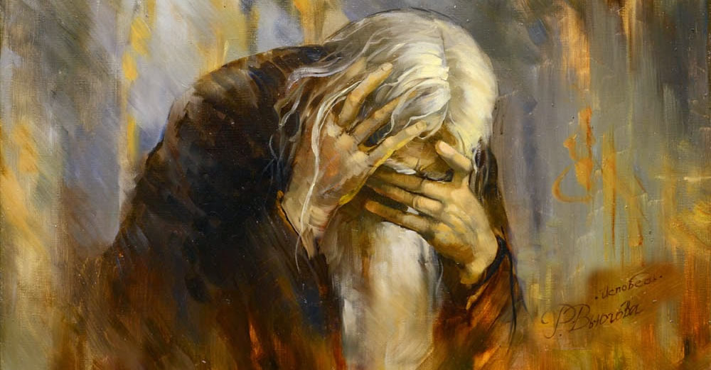 «Πάτερ μου, είμαι  καταδικασμένη, γιατί δεν αγαπώ όπως πρέπει τον Θεό και τον συνάνθρωπό μου. Έχω πάντοτε στον νου και στην καρδιά μου αυτό που από μικρή με έμαθε ο άγιος παπάς του χωριού μου, τον λόγο του Κυρίου «αγαπήσεις Κύριον τον Θεόν σου με όλη την ψυχή και την καρδιά σου και τον πλησίον σαν τον εαυτό σου». Πάτερ μου, βλέπω πόσο λειψή είμαι στην αγάπη αυτήν. Οι λογισμοί μου πολλές φορές βρίσκονται σε άλλα πράγματα παρά στην αγάπη του Θεού. Με παρασύρει το στομάχι μου, γιατί πρέπει κάτι να τσιμπήσω για να στέκομαι, όταν κρυώνω φοβάμαι μη και πουντιάσω, οπότε θα γίνω βάρος στην καλή γυναίκα που με έφερε, τρέμω μη και πέσω και σύρω γύρω μου έτσι κι άλλους ανθρώπους… Κάνω βέβαια λίγα απ’ αυτά που λέει η Εκκλησία μας, αλλά στο σπίτι, όχι στον ναό. Διαβάζω, όσο μπορούν ακόμη τα μάτια του και καταλαβαίνει το μυαλό μου, λίγο μεσονυκτικό, τον όρθρο, τον εσπερινό και τον απόδειπνο. Λέω κάποιες παρακλήσεις στη γλυκιά Παναγιά μας κι έχω μάθει από μικρή και τους Χαιρετισμούς. Λέω και το «Κύριε ελέησον», πριν φυράνει το μυαλό μου. Μα, νιώθω πως δεν φτάνουν αυτά. Σας είπα και πριν πως με κλέβουν κάποιοι λογισμοί. Οπότε βρίσκομαι μακριά από την αγάπη του Θεού. Κι όσο σκέφτομαι τις ελλείψεις μου, όσο καταλαβαίνω πως είμαι σαν πτώμα από πλευράς πνευματικής, τόσο μου έρχονται και δάκρυα. Κλαίω, πατέρα μου, τον εαυτό μου, κλαίω, κλαίω χωρίς σταματημό…