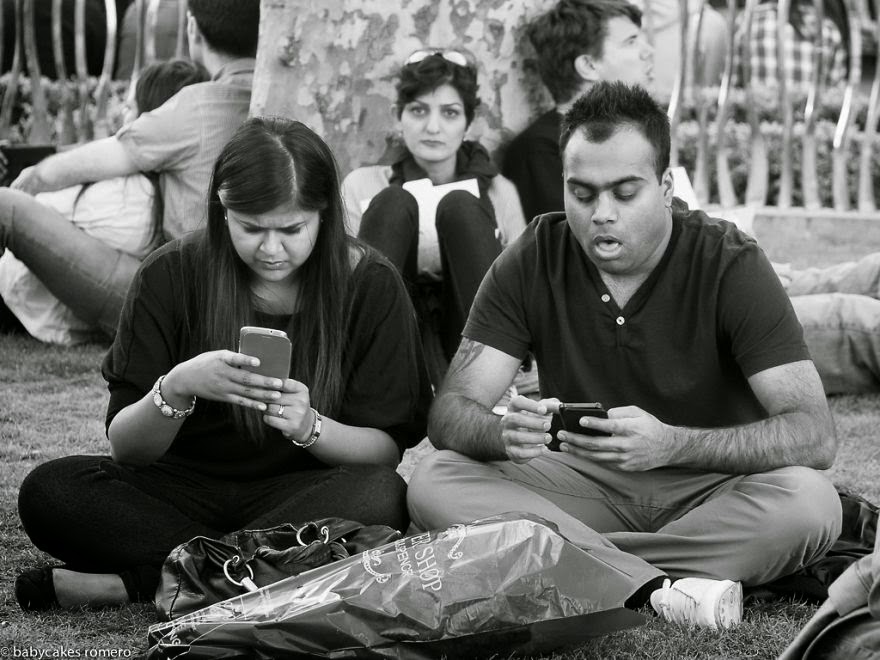 Ο Babycakes Romero είναι ένας από τους καλύτερους φωτογράφους του δρόμου ο οποίος έχει αφιερώσει την τέχνη του στην καταγραφή λεπτομερειών από την πραγματικότητα που μας περιβάλλει. Μία από τις πιο πρόσφατες δουλειές του είναι μία σειρά φωτογραφιών με θέμα το “κόλλημα” με τα κινητά μας.