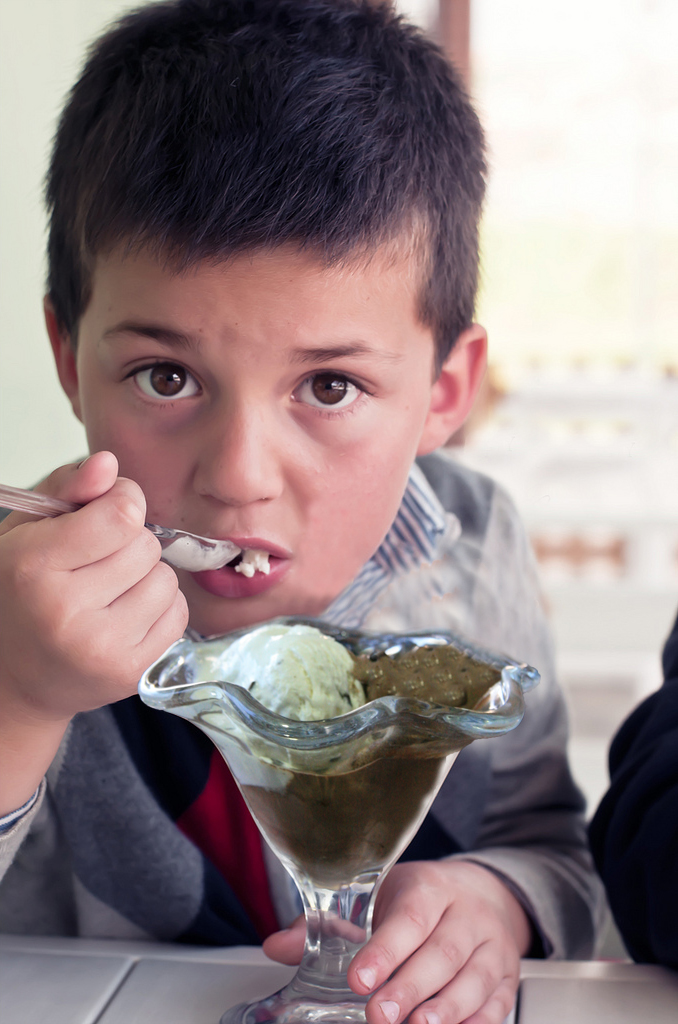 Στο καιρό της δραχμής και τότε που τα παγωτά ήταν πιο φθηνά απ’ ότι σήμερα, ένα παιδί δέκα ετών μπήκε στο ζαχαροπλαστείο και κάθισε σ’ ένα τραπέζι. Η σερβιτόρα τον σέρβιρε μ’ ένα ποτήρι νερό.