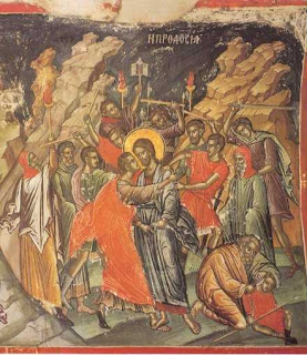 Οι μαθηταί δεν είχαν καταλάβει το νόημα εκείνης της άλλης φράσεως: «ο μή έχων (βαλάντιον) πωλησάτω το ιμάτιον αυτού και αγορασάτω μάχαιραν» (Λουκ. 22, 36). Ο Ιησούς είχε θελήσει να πη: Υπάρχουν εποχές που πρέπει να θυσιάσουμε ακόμη κι αυτό που φαίνεται τελείως αναγκαίο. Για να μπορέσουμε έτσι να συγκεντρώσουμε την επαγρύπνησή μας στις εφόδους του κακού. Μα τόσο η επίθεση, όσο και η υπεράσπιση ανήκουν στον κόσμο του πνεύματος. Ο Ιησούς προχωρεί μπροστά προς συνάντηση της σπείρας που ερχόταν να τον συλλάβη «μετά φανών και λαμπάδων και όπλων» (Ιωαν. 18, 3). Προχωρεί ελεύθερα, αυθόρμητα προς το Πάθος του.