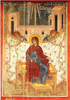 Βλέπουσα ἡ Ἁγία, ἑαυτὴν ἐν ἁγνείᾳ, φησὶ τῷ Γαβριὴλ θαρσαλέως· Τὸ παράδοξόν σου τῆς φωνῆς, δυσπαράδεκτόν μου τῇ ψυχῇ φαίνεται· ἀσπόρου γὰρ συλλήψεως τὴν κύησιν πῶς λέγεις; κράζων· Ἀλληλούϊα.