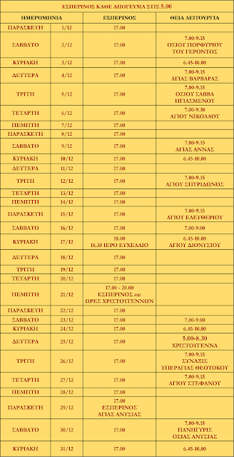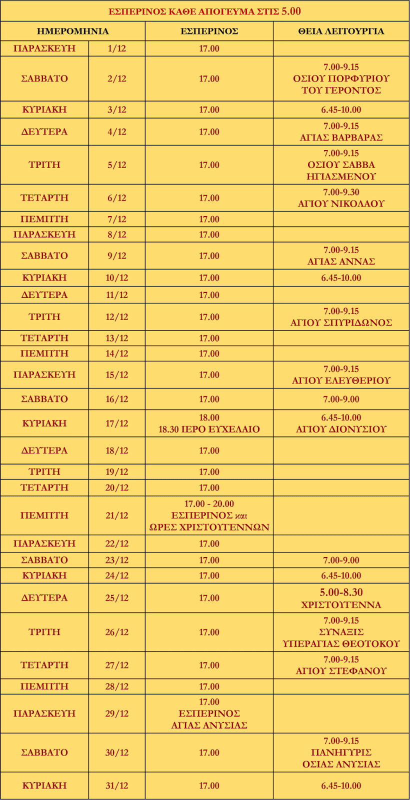 ΠΡΟΓΡΑΜΜΑ ΑΚΟΛΟΥΘΙΩΝ ΔΕΚΕΜΒΡΙΟΥ 2017