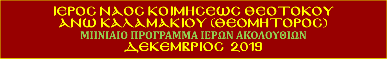 ΠΡΟΓΡΑΜΜΑ ΑΚΟΛΟΥΘΙΩΝ ΔΕΚΕΜΒΡΙΟΥ 2019