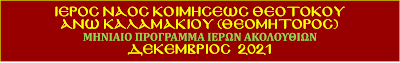 ΠΡΟΓΡΑΜΜΑ ΑΚΟΛΟΥΘΙΩΝ ΔΕΚΕΜΒΡΙΟΥ 2021