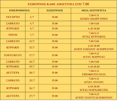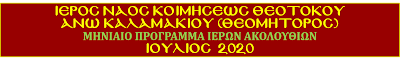 ΠΡΟΓΡΑΜΜΑ ΑΚΟΛΟΥΘΙΩΝ ΙΟΥΛΙΟΥ 2020