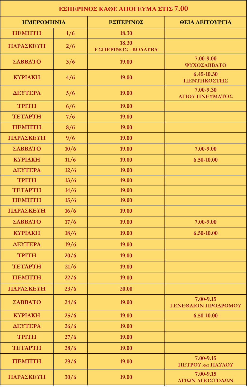 ΠΡΟΓΡΑΜΜΑ ΑΚΟΛΟΥΘΙΩΝ ΙΟΥΝΙΟΥ 2017