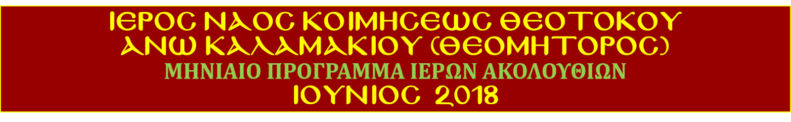 ΠΡΟΓΡΑΜΜΑ ΑΚΟΛΟΥΘΙΩΝ ΙΟΥΝΙΟΥ 2018