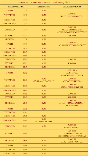 ΠΡΟΓΡΑΜΜΑ ΑΚΟΛΟΥΘΙΩΝ ΜΑΪΟΥ 2018