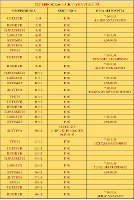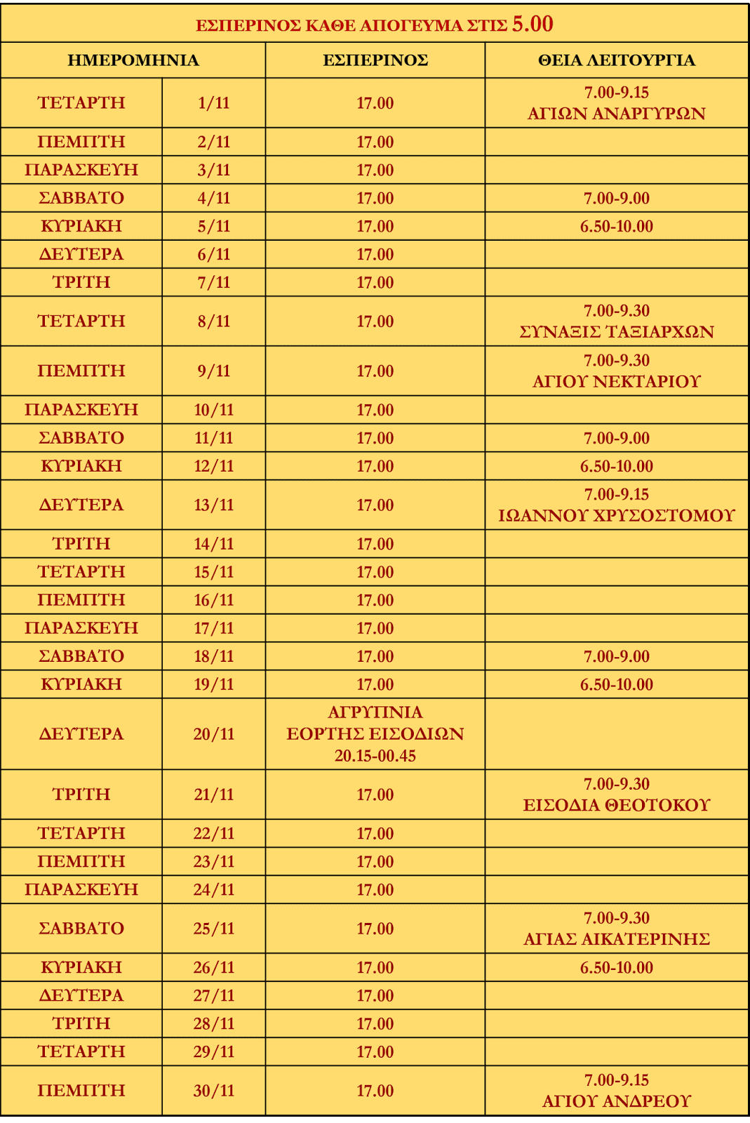 ΠΡΟΓΡΑΜΜΑ ΑΚΟΛΟΥΘΙΩΝ ΝΟΕΜΒΡΙΟΥ 2017