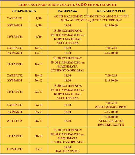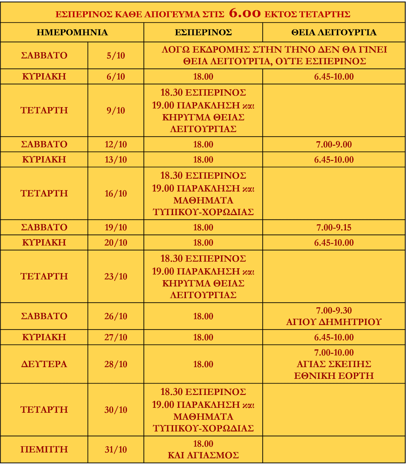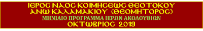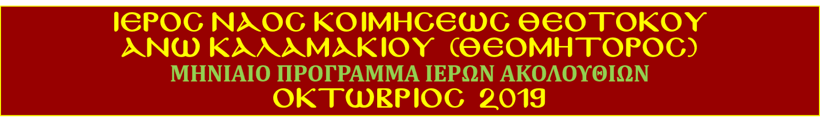 ΠΡΟΓΡΑΜΜΑ ΑΚΟΛΟΥΘΙΩΝ ΟΚΤΩΒΡΙΟΥ 2019