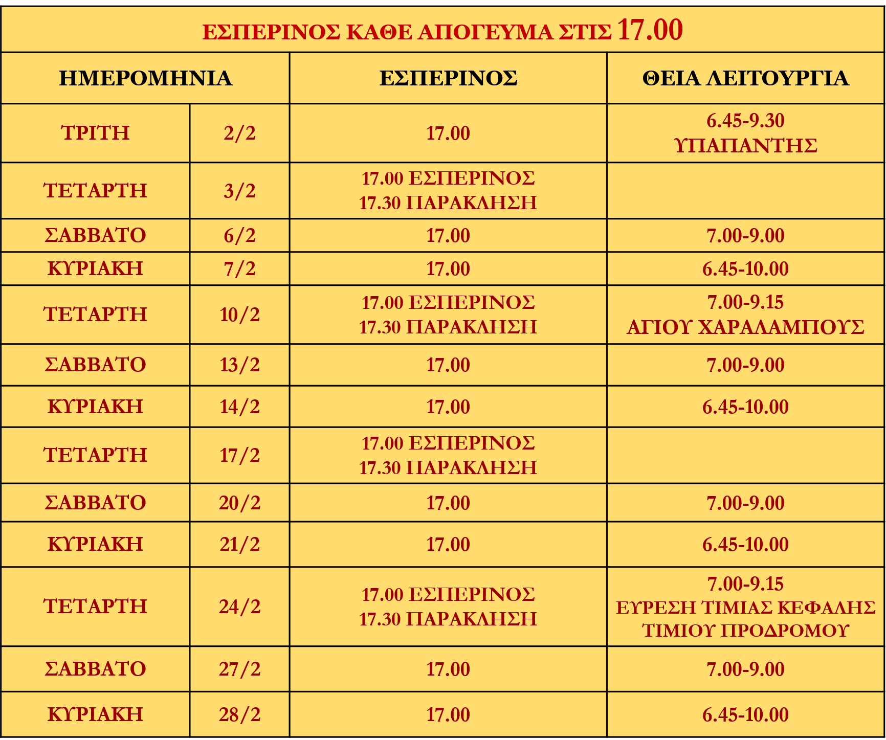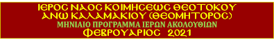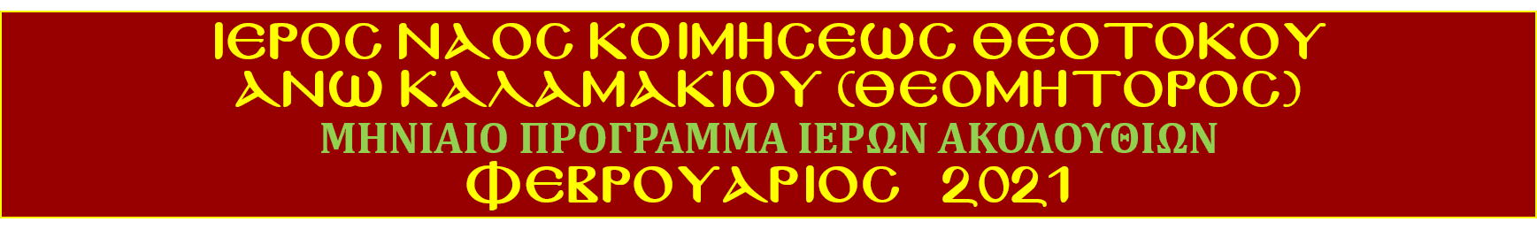 ΠΡΟΓΡΑΜΜΑ ΑΚΟΛΟΥΘΙΩΝ ΦΕΒΡΟΥΑΡΙΟΥ 2021