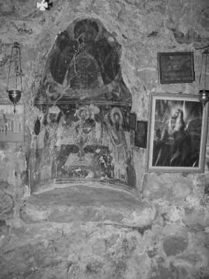 Οι τοίχοι τους γεμάτοι από μικρές εικονίτσες με τους λατρευτούς της τους Αγίους και κυρίως τον Άγιο Νεκτάριο τον προστάτη της . Μαζί με τον άντρα της , τον Πετράκη της , δεν σταμάτησε ποτέ να τον επισκέπτεται στην Αίγινα και κάθε φορά που επέστρεφε όλο και γέμιζε περισσότερο τον τοίχο με φωτογραφίες από την οσιακή του κοίμηση , και αυξάνονταν τα μπουκαλάκια με τον Αγιασμό και το λαδάκι του , αμέτρητα πλέον σε κάθε γωνιά του φτωχικού της …Αμέτρητοι και οι Νοέμβρηδες όταν σημάδευαν την μνήμη του, που η Καλλιοπίτσα έφτιαχνε η ίδια μεγάλους άρτους αφράτους με γλυκάνισου άρωμα και έκανε λειτουργία στον Ταξιάρχη να τιμήσει της Σηλυβρίας τον γόνον και της Αιγίνης τον έφορον , ψέλνοντας κι αυτή απ τις πίσω θέσεις που πάντα καθότανε , το απολυτίκιό του που τόσο πολύ την δάκρυζε…