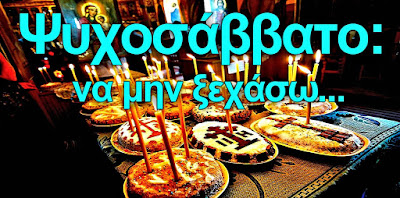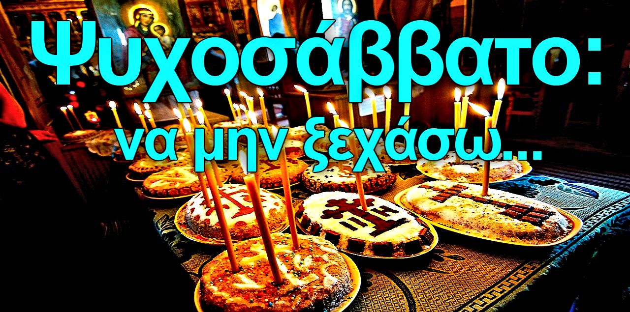 Ψυχοσάββατο. Μέρα ξεχασμένη για τους πολλούς του κόσμου. Ο θάνατος είναι άλλωστε για τη νοοτροπία της εποχής μας το τέρμα. Οι κεκοιμημένοι μάς πονούν, αλλά πρέπει να ζήσουμε. Να προχωρήσουμε. Και το μνημόσυνο είναι μόνο ατομική υπόθεση. Όταν συμπληρώνονται οι μέρες, οι σαράντα, ο χρόνος, θυμόμαστε. Πάμε στο ναό. Έρχονται και όσοι μας αγαπούν και όσοι αγαπούσαν τον κεκοιμημένο. Και φτάνει. Γιατί άραγε όλοι μαζί, να έχουμε δύο ημέρες το χρόνο στις οποίες να θυμόμαστε πάντας τους κεκοιμημένους. Έτσι δεόμεθα υπέρ μακαρίας μνήμης και αιωνίου αναπαύσεως πάντων των απ’ αιώνος κεκοιμημένων ορθοδόξων χριστιανών, βασιλέων, πατριαρχών, αρχιερέων, ιερέων, ιερομονάχων, μοναχών, γονέων, προγονέων, πάππων, προπάππων, διδασκάλων, αναδόχων ημών εν τη πίστει…