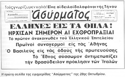 Στο θρίαμβο της Ελλάδας του 1940 θα αναφερθώ για να επισημάνω για μια ακόμη φορά κάποια γεγονότα μεγαλείου της φυλής μας, όταν πρόκειται για την υπεράσπιση των ανθρωπίνων αξιών χωρίς υπολογισμούς θυσιών.